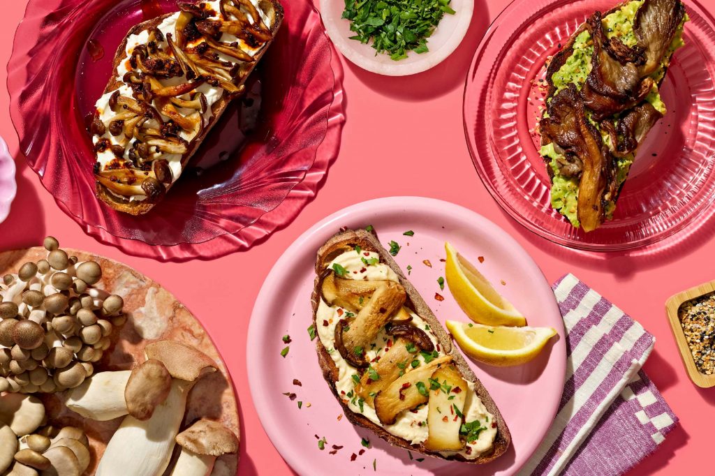 Grab a mushroom variety pack from your grocery store and sauté them at the beginning of the week to have on hand for quick, savory breakfasts in minutes. Three mushroom varieties, three flavorful combinations and three different toasts to add to your breakfast lineup. From hearty oyster mushroom avocado toast to zesty lemon and hummus king trumpet toast or zingy chili crisp, cream cheese and beech mushroom toast, you can mix, match and customize your toast (or any breakfast) all week long with minimal effort.