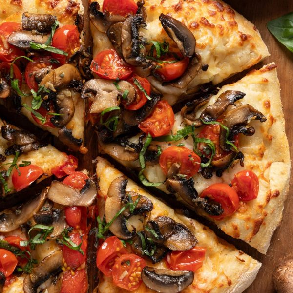 Mushroom, Mozzarella, and Cherry Tomato Pizza
