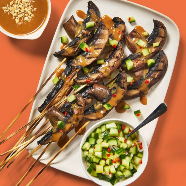 Portabella Satay with Spicy Cucumber Relish and Peanut Sauce